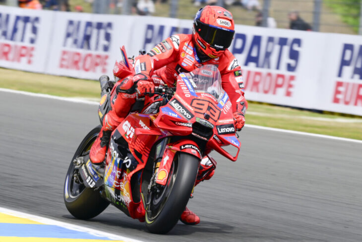 A new all-time lap record for Practice honours at the Michelin Grand Prix of France? That’s exactly what Marc Marquez (Ducati Lenovo Team) served up as his 1:29.855 sees the six-time MotoGP World Champion acting as the rider to beat after the opening day of running. Leading the chase is home hero Fabio Quartararo (Monster Energy Yamaha MotoGP), much to the delight of the packed Le Mans terraces, while Francesco Bagnaia (Ducati Lenovo Team) pocketed a P3.