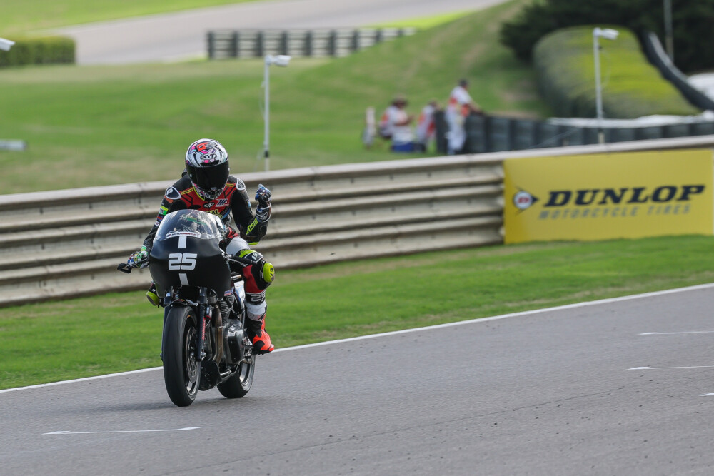 This one looked to be a Di Mario romp as the fast qualifier took off from the pack to earn what appeared to be a comfortable victory. But with his grip level fading quickly, the Robem Engineering Aprilia RS 660-mounted Di Mario was a sitting duck as Dreher carved his way through traffic to get to the back of Di Mario with just a lap to go. And then he made his pass, crossing the finish line just .058 of a second ahead of the defending Twins Cup Champion.